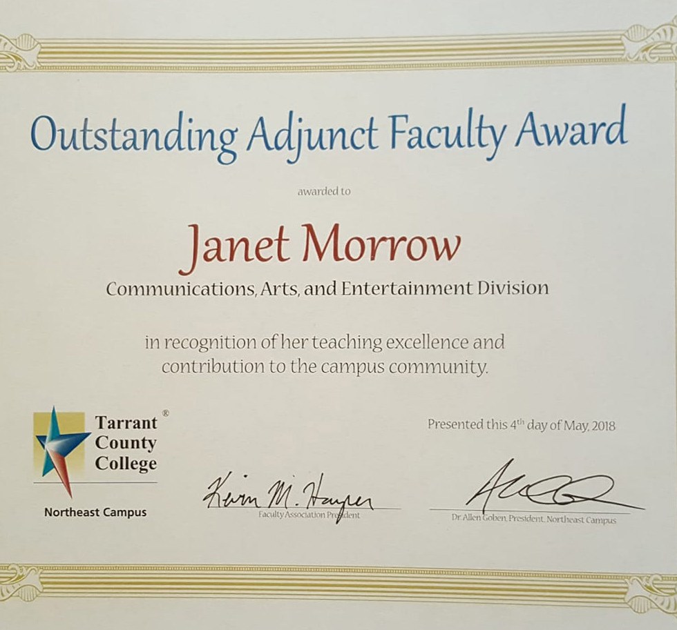 OUTSTANDING ADJUNCT AWARD – Tarrant County College NE