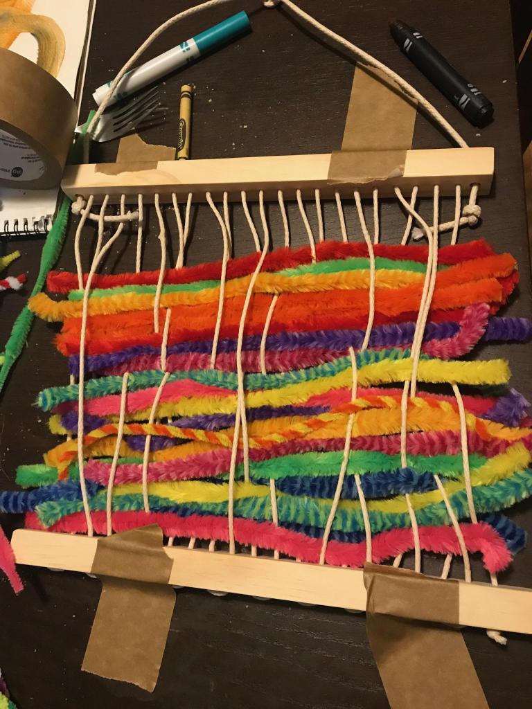 - Chenille stems for the weft threads