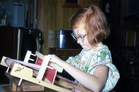 This post seems to have legs and keep going on and on. A couple of weeks after Finn and I worked on this project, I found an old photograph of me with a loom my parents gave me for my eighth birthday. I had so much fun with it and it probably planted the seeds of all kinds of future fiber work. The gift of art supplies at the right time can change a child’s life forever.
