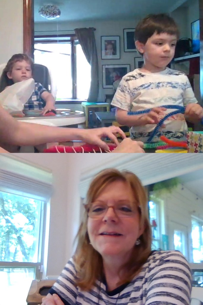 I would like for the story we read and song we sing to be directly related to our project — when that’s possible. This week we read, Abuela’s Weave by Omar S. Castaneda, illustrated by Enrique O. Sanchez, Lee & Low Books, Inc., 1993. This book is a 1993 Parent’s Choice Award Honoree. I loved that the story is about the relationship between a child and her grandmother and that it gives us some insight into rural Guatemalan culture. The colorful illustrations are beautifully done and feature some lovely examples of patterning (repetition of a design or motif) – a good concept to introduce while working on a weaving project.