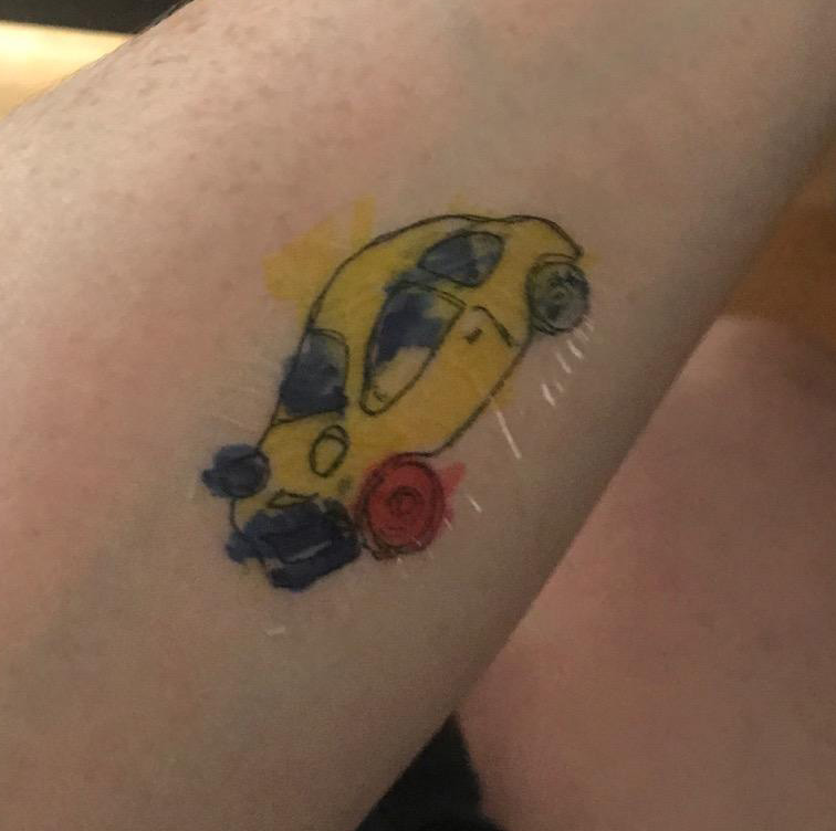 - Now it’s time for your child to color the tattoos, if they haven’t already. I tested water-based felt tip markers and permanent markers and for me the water-based worked better.