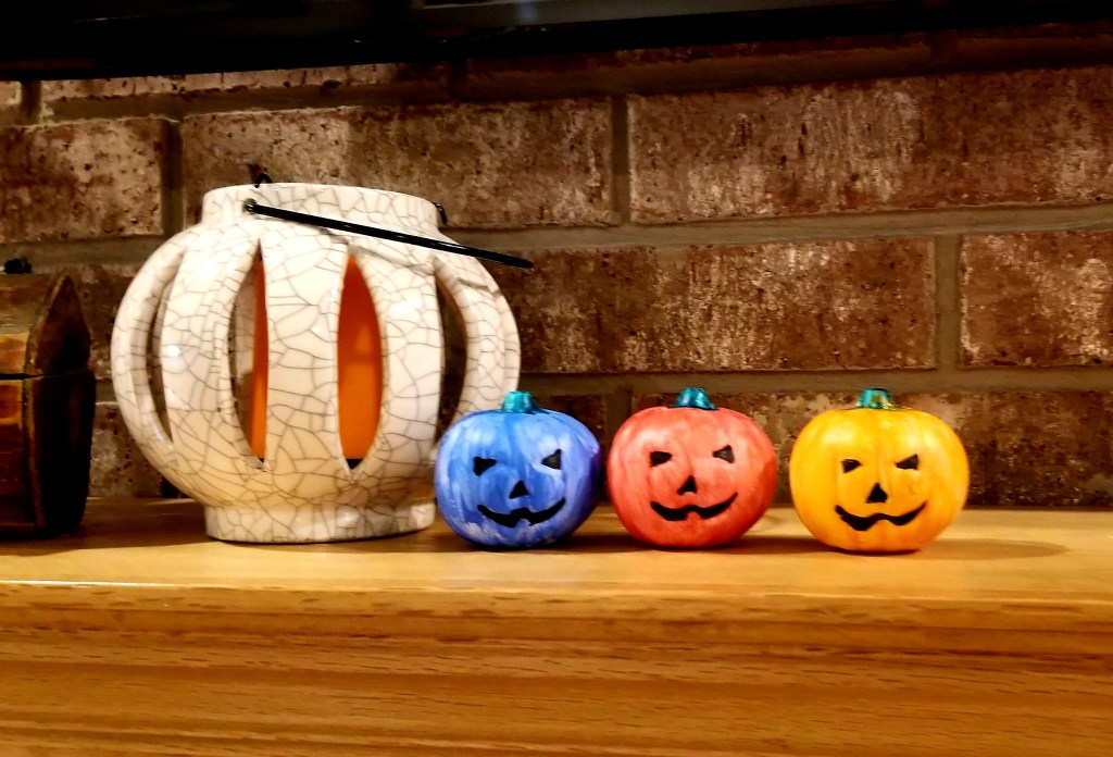 But back to squishy pumpkins! There are many varieties of artificial foam pumpkins in hobby stores and online. You have to be a little careful of the type of paint you use with them. Some paints will not adhere well to foam products or crack and fall off when they dry. To avoid this problem, I bought a kit that included the paint: BEIGUO Paint Your Own Squishy Pumpkin. (Note: the link I originally posted for this product has expired, so this exact product may no longer be available. If not, there are many other choices available.)